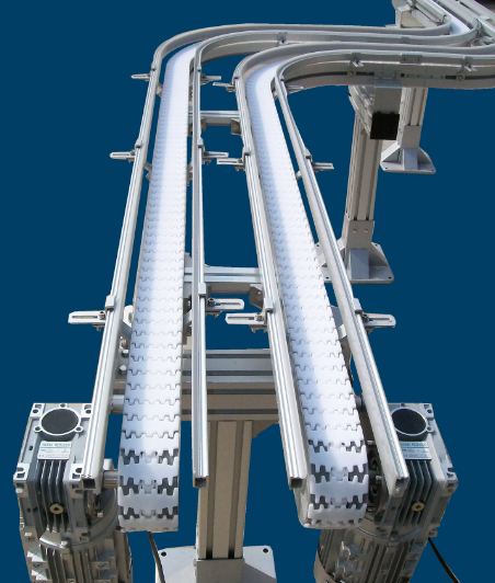 柔性輸送機適用于不同平面、不同樓層的輸送,可形成人行道或叉車通道,輸送線寬度可隨輸送產(chǎn)品規(guī)格輕松調(diào)整寬度,適應(yīng)不同規(guī)格和形狀的產(chǎn)品。常用于各種材質(zhì)瓶形、軟包、盒裝、紙箱、異形產(chǎn)品等等。柔性輸送線選用的彈性軟膠夾持鏈的材料為高彈性聚氨酯,不變形、不磨損。設(shè)備機體可選擇鋁合金或不銹鋼材料。