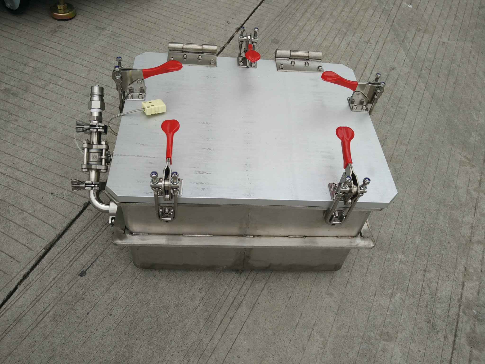 2、各腔備有抽真空和充氮?dú)饨涌?,每膽?/span>KF16接頭及不銹鋼波紋管與真空箱快速相接。